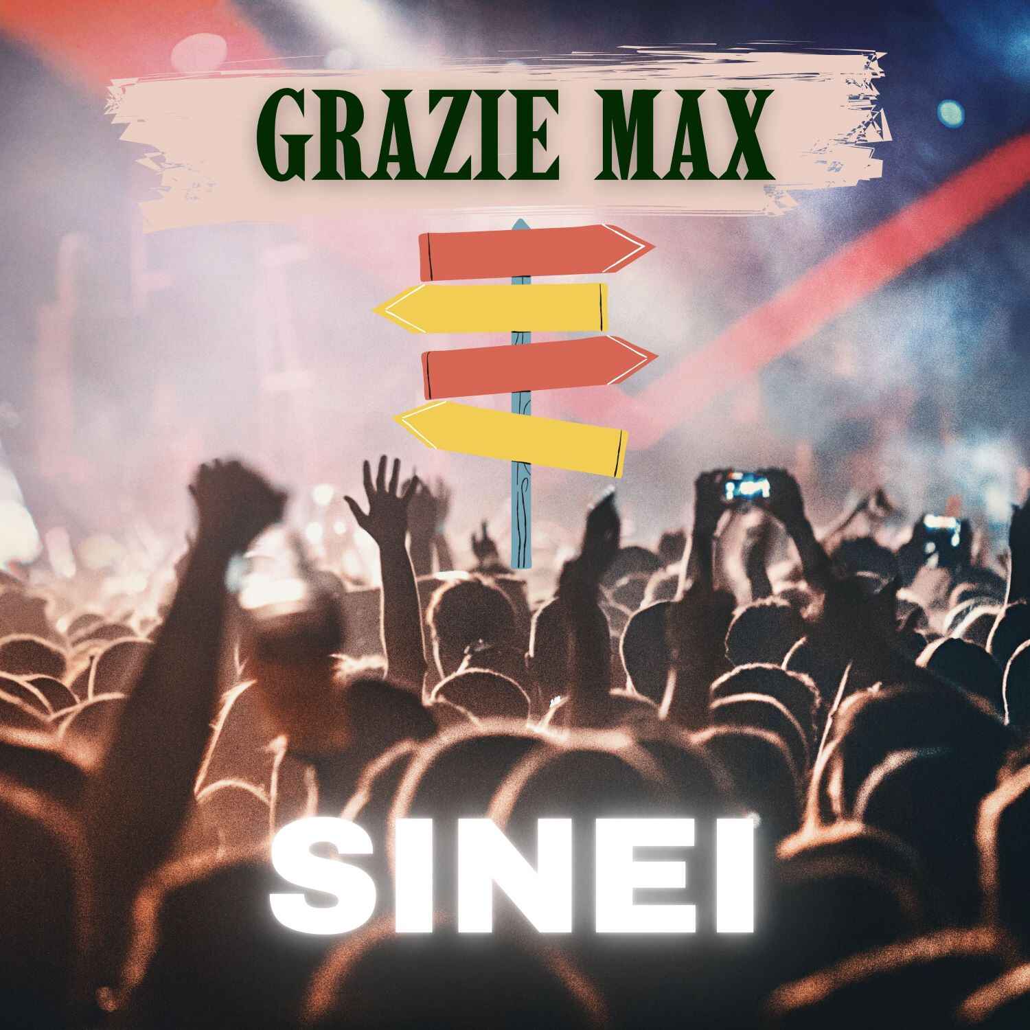 Scritto due anni fa e lasciato "maturare" come un buon vino, "Grazie Max" è un nostalgico omaggio alle serate romane dell'adolescenza di Sinei, trascorse a bordo di un motorino sulle strade deserte, con un walkman nelle orecchie e la musica degli 883 come colonna sonora. Ambientato in un periodo sfidante sul piano economico, quando le vacanze erano un lusso irraggiungibile, il brano prende vita dalle emozioni di quell'epoca. Le canzoni di Max Pezzali diventavano allora una compagnia vitale e un rifugio sicuro, raccontando storie di sogni, amicizie e speranze che risuonavano profondamente nell'animo di un giovane Sinei.